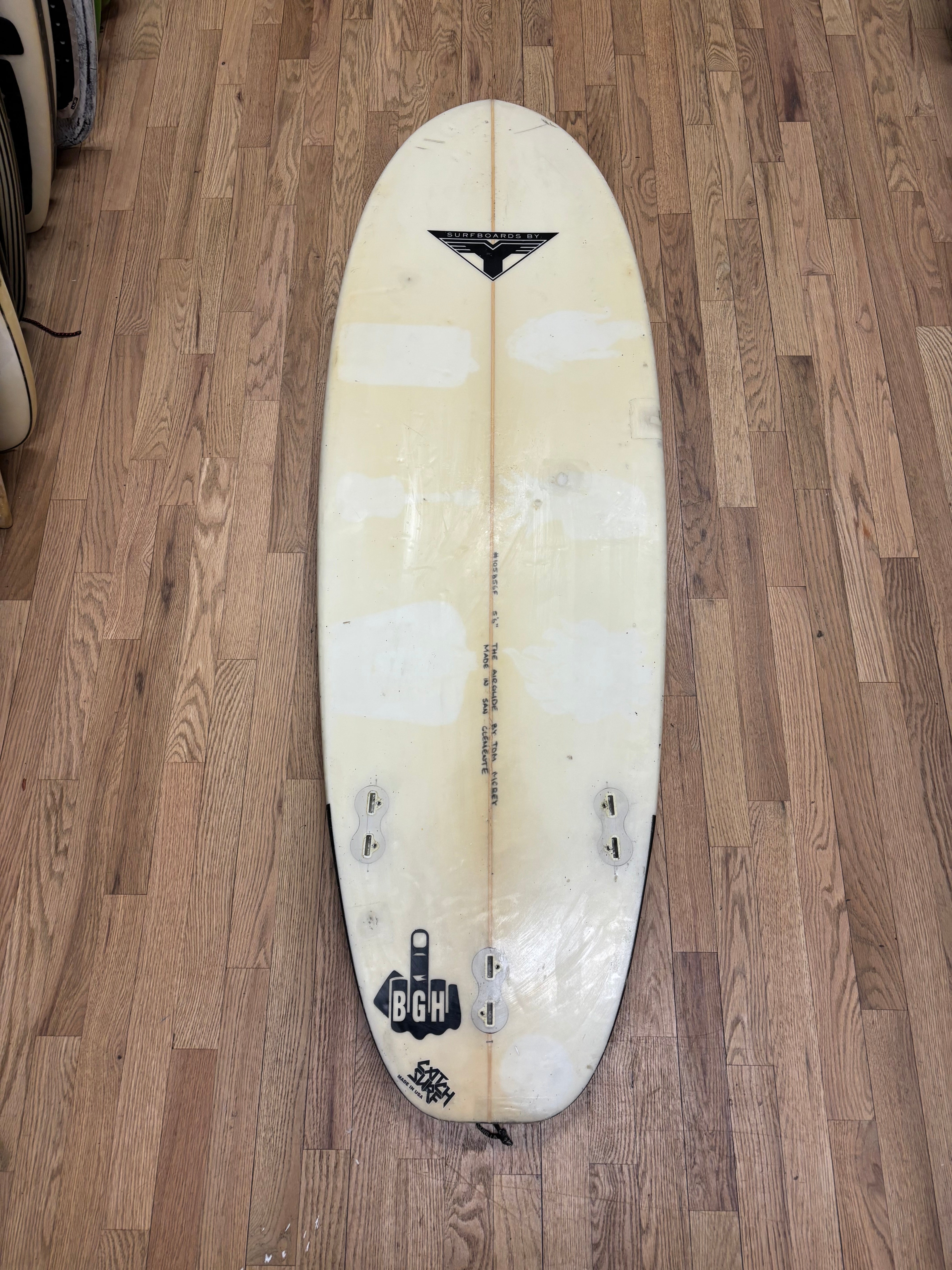 True Steve Martin hand-shaped custom, labeled “The Air Glide”, shaped by Tom Morey and made in San Clemente. This board has real history and surf pedigree — not something you see every day.