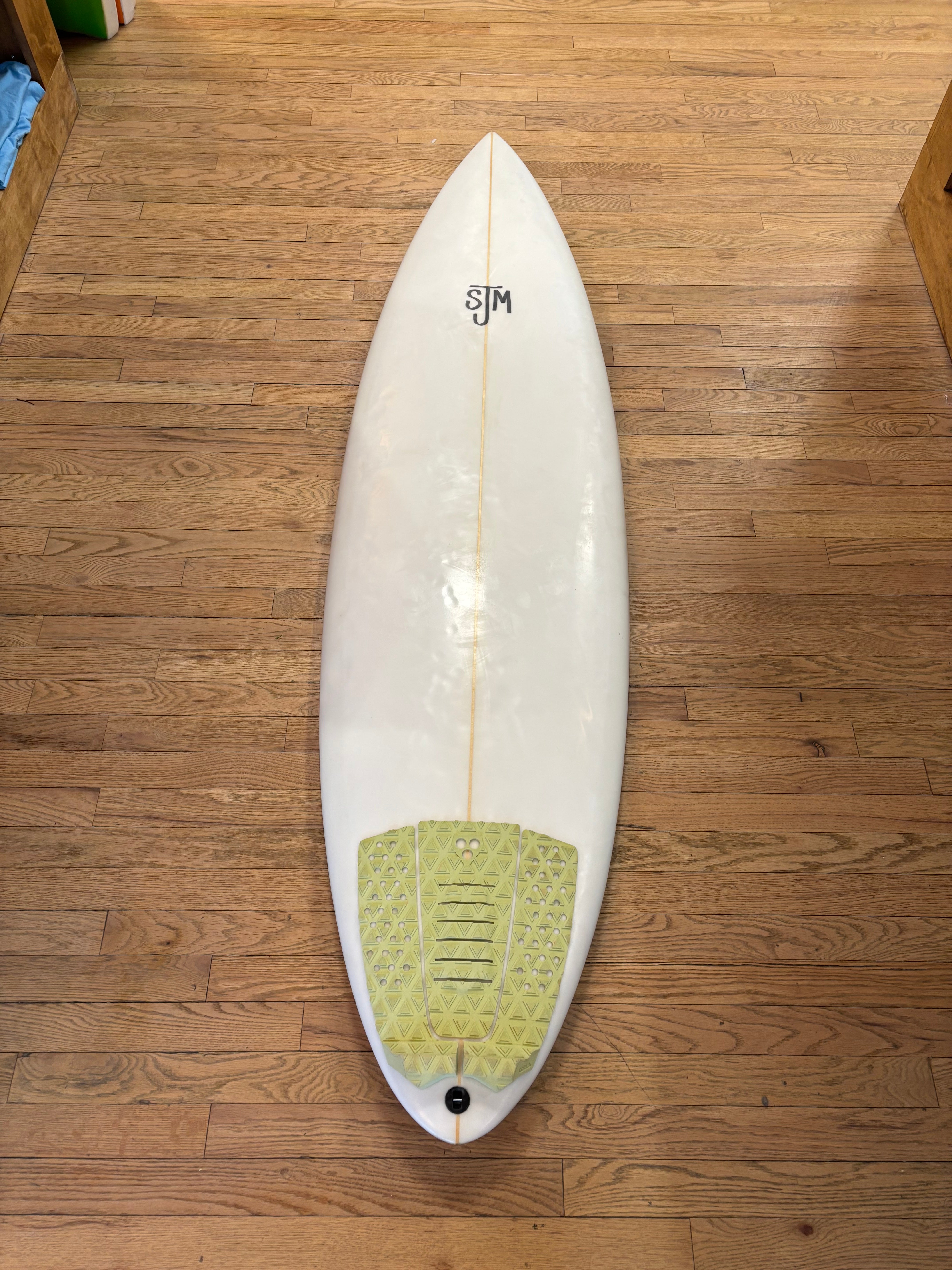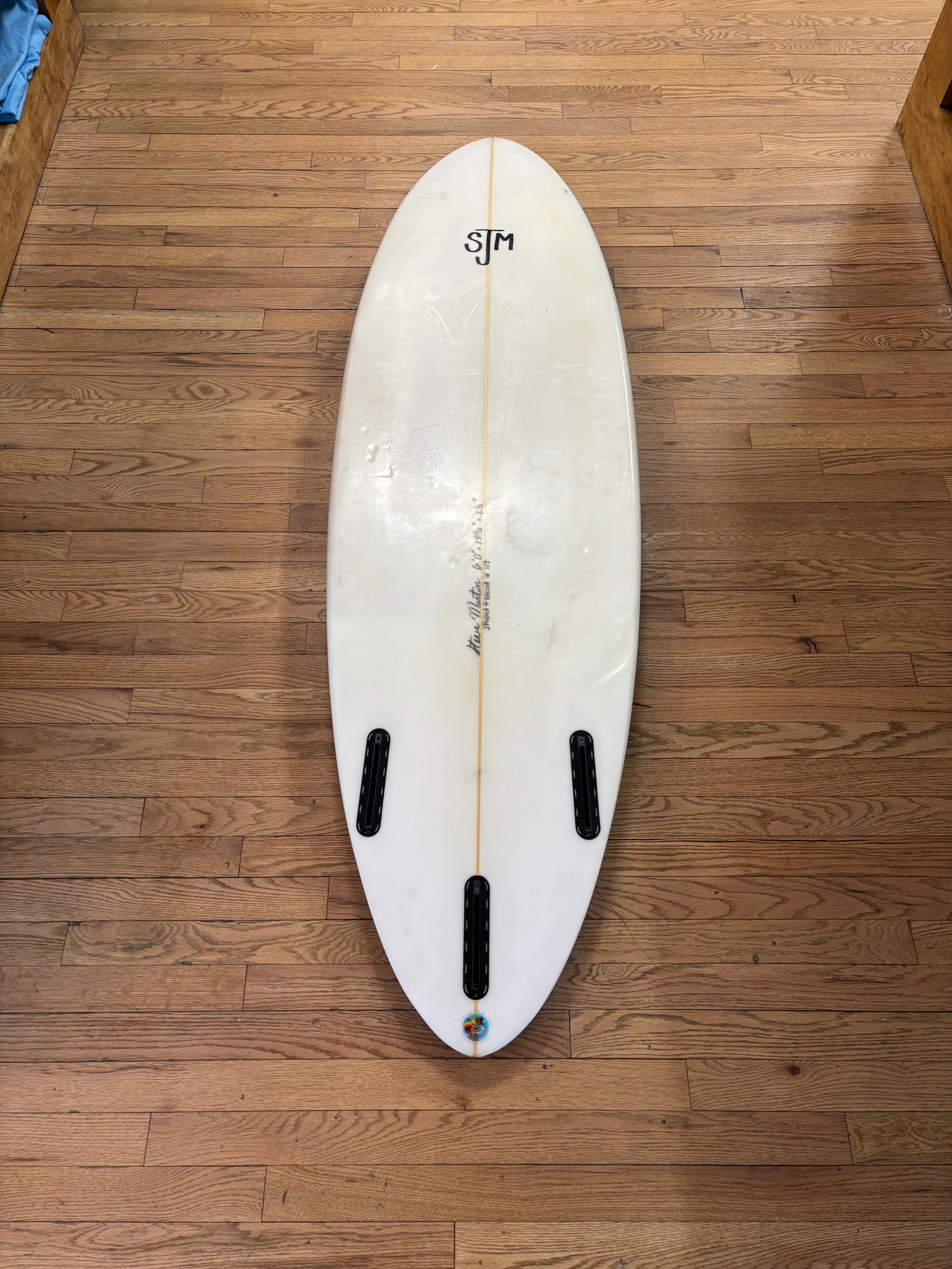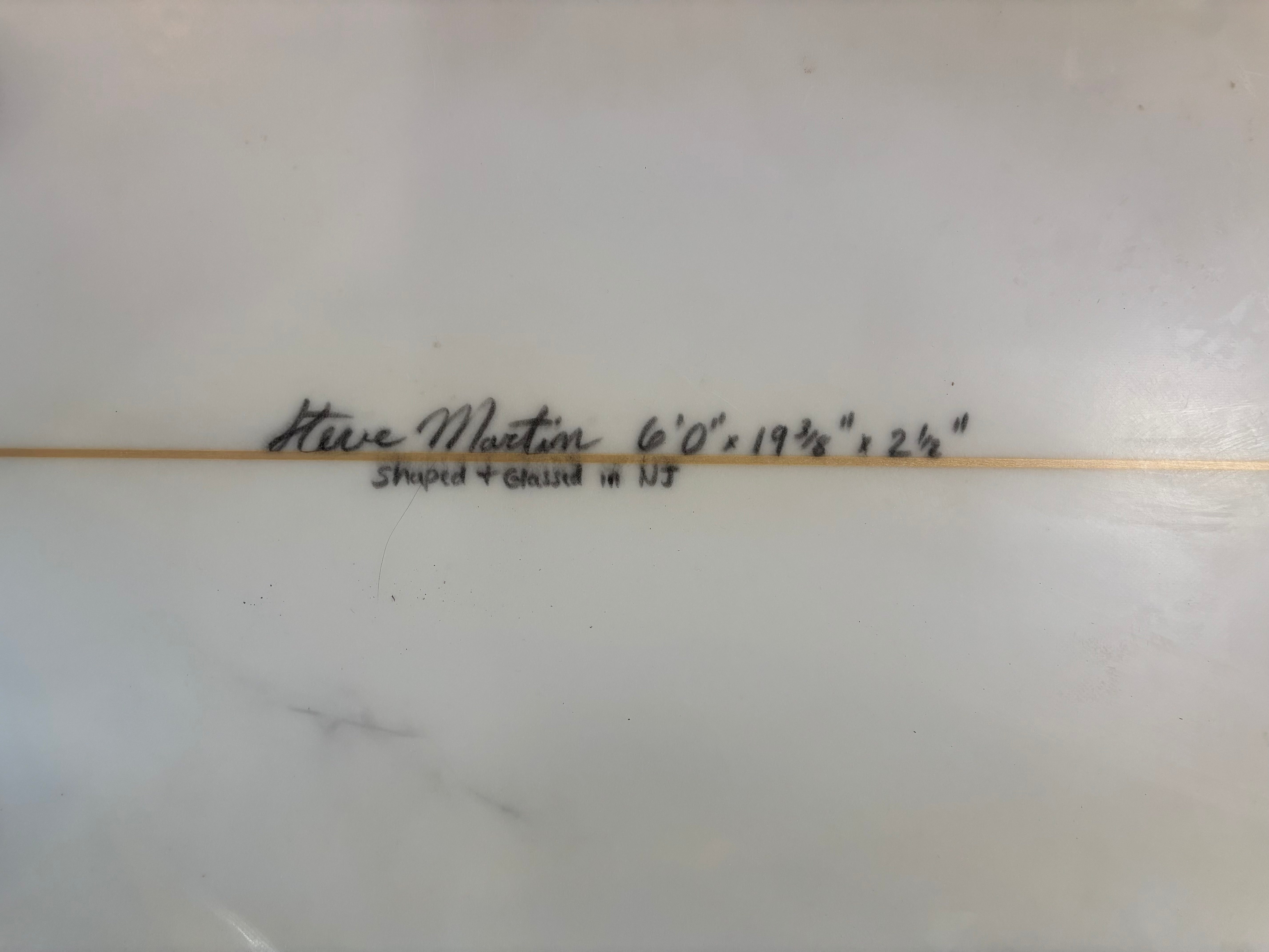 High-quality Steve Martin custom thruster, hand-shaped and glassed in New Jersey. This is a well-balanced performance shortboard with a clean outline and refined rails, designed for speed, control, and reliable turning in a wide range of conditions.