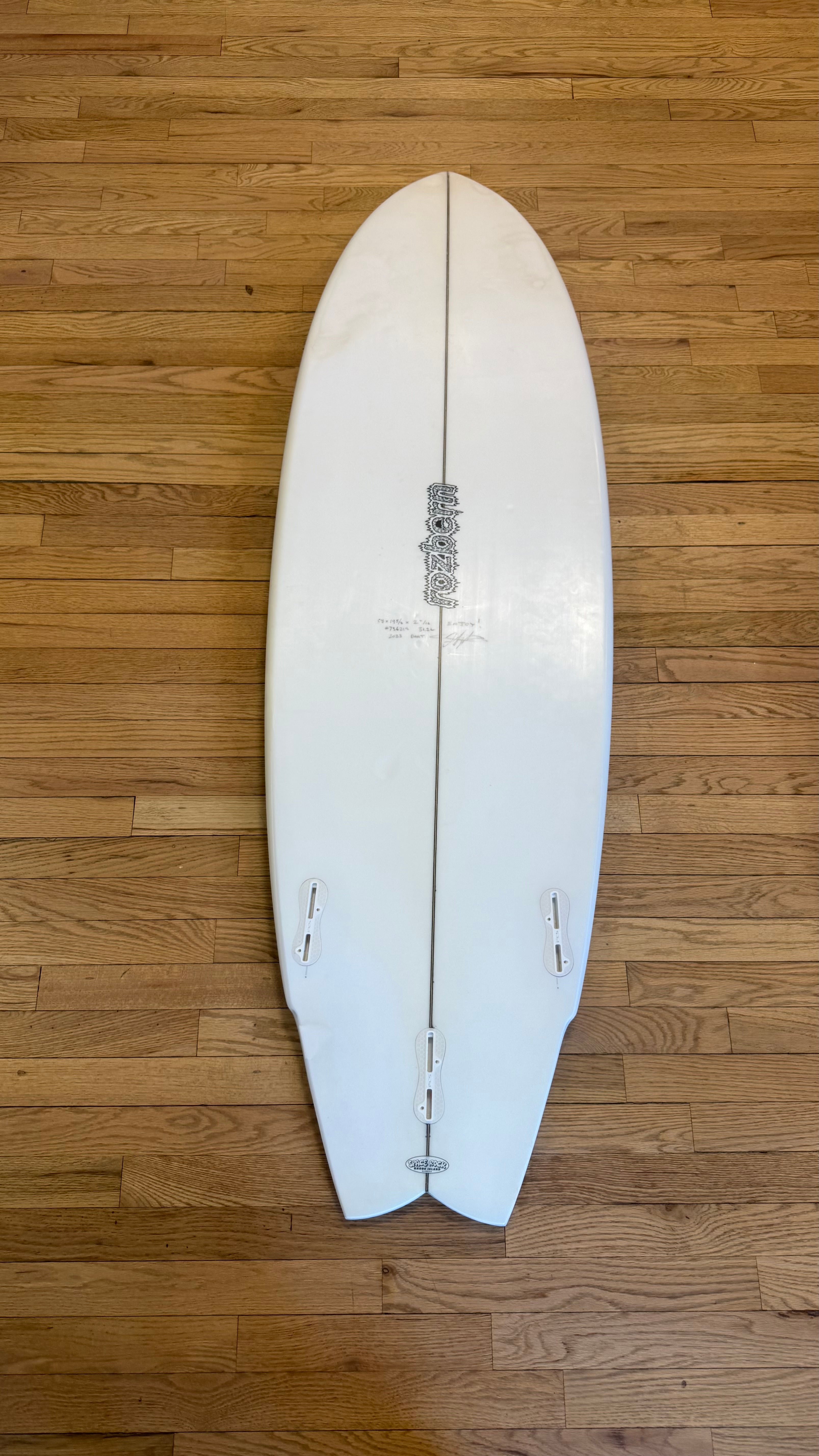 Clean Rozbern 5'8” hybrid fish built for speed and fun in NJ waves. Wider outline + fish tail gives easy paddle power and fast down-the-line speed. Perfect for small to medium surf and everyday sessions.