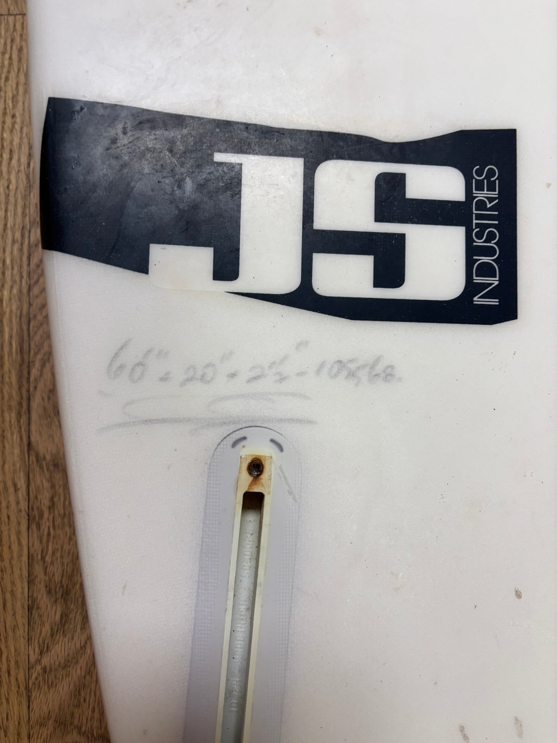 6’0 JS surfboard in good condition. This board has been well cared for and is water-tight with no major dings or repairs—just the usual light pressures on the deck from normal use.