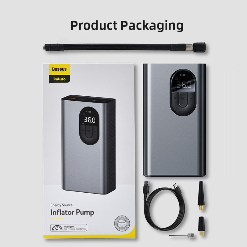 Baseus Portable Inflator Pump Car Air Compressor Smart Digital Tire Pressure Detection Auto Tire Pump for Car Bike Motorcycle