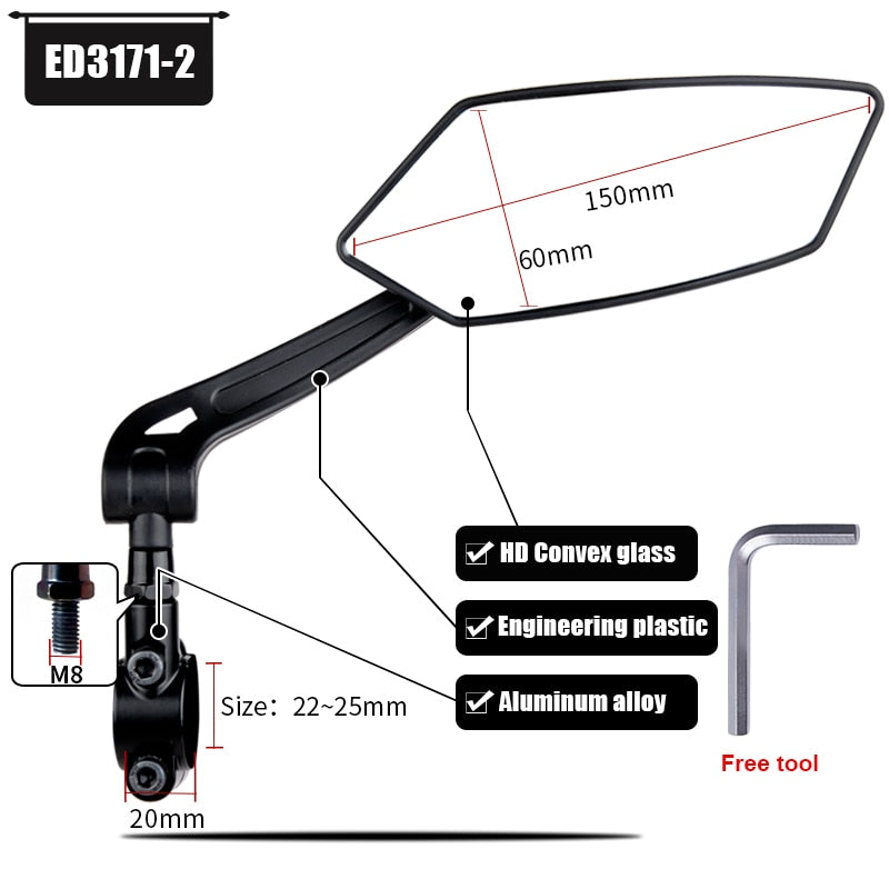 EasyDo Bicycle Handlebar Rear View Mirror Bike Cycling Wide Range Back Sight Reflector Adjustable Left Scooter E Bike Mirror